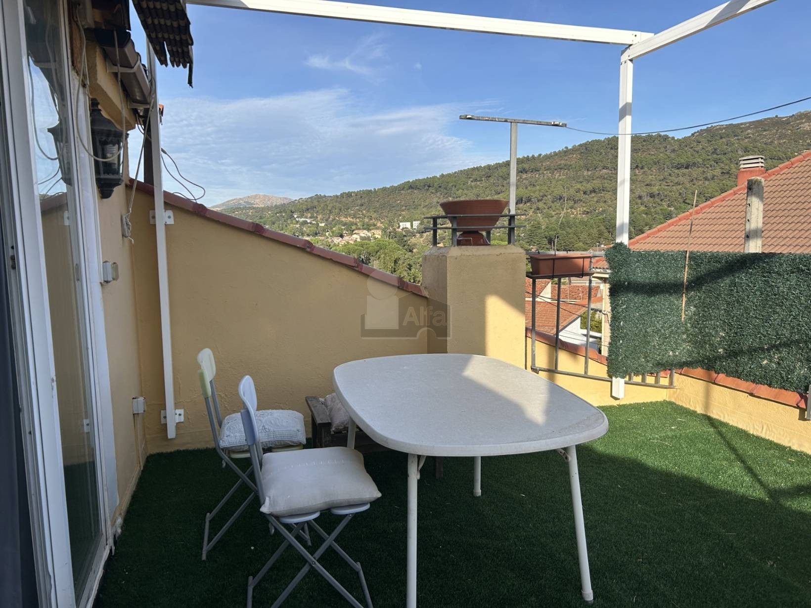 Sierra Oeste de Madrid. En esa planta posee una estancia cerrada y acristalada con acceso a la terraza que podría convertirse en un tercer dormitorio.